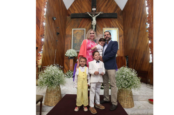 El integrante más pequeño, Henri Emanuel, se incorporó a la comunidad católica al ser bautizado, y para recibir en sus sienes las aguas del Jordán, fue cargado por sus padrinos, Jolie Osuna de Santander, Arturo Santander Tirado, Kenya Santiago y Georg Gatchev, quienes se comprometieron a ser su guía.