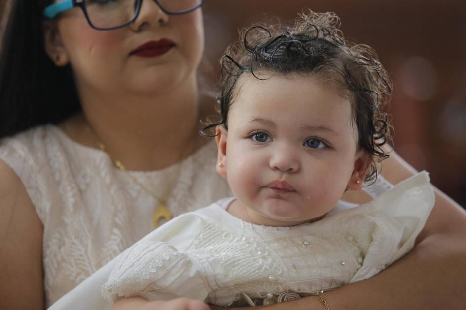 La pequeña recibió las aguas benditas del Río Jordán en la Parroquia María del Mar. ( ) -