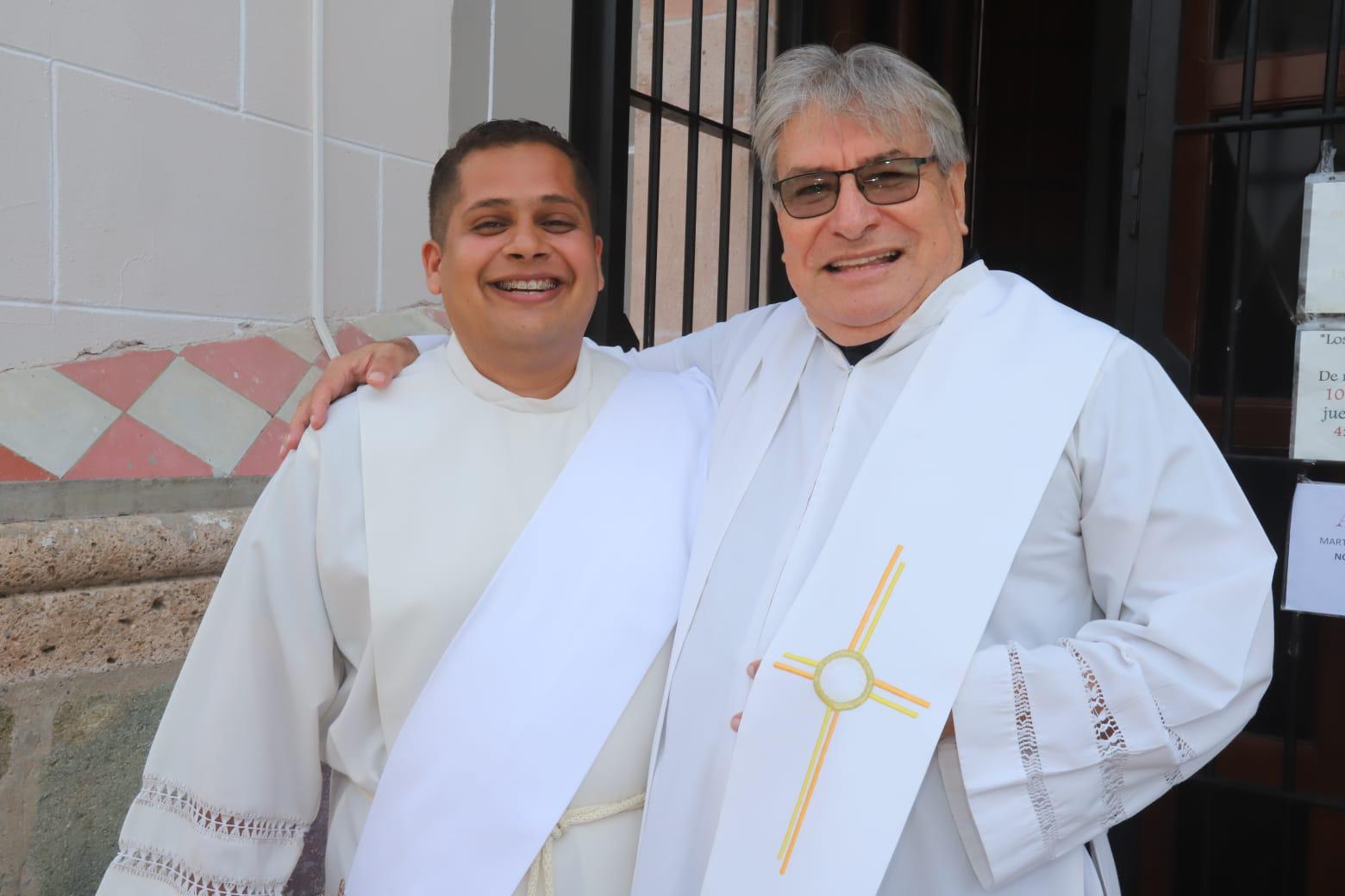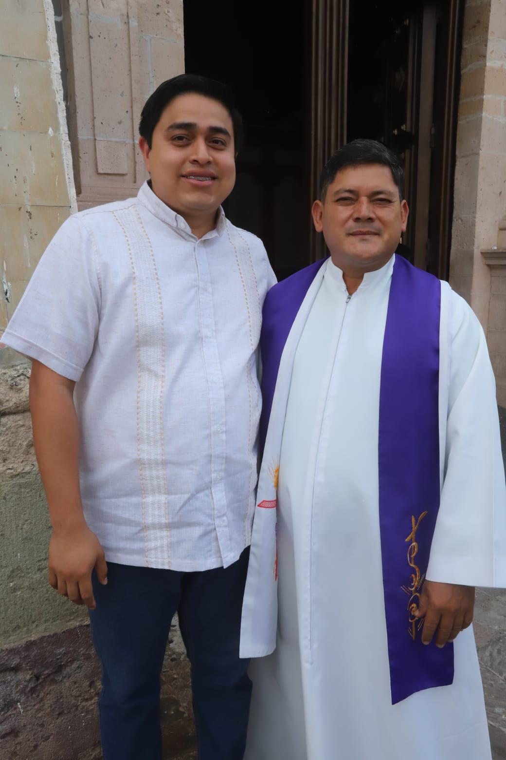 El diácono Sergio Armando Pérez Zamudio junto al Padre Rafael Martínez Gallardo. ( ) -