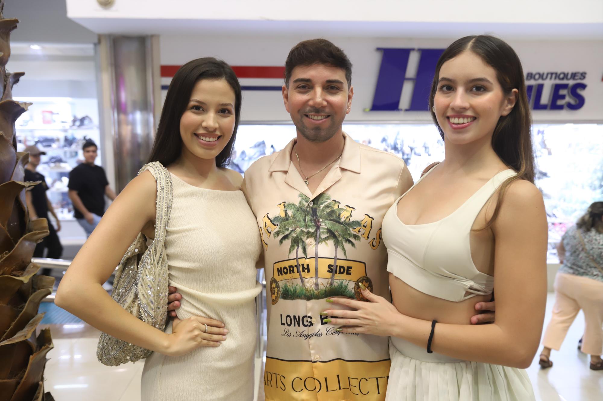 Mario Go, quien es el coordinador de la pasarela del concurso, entre Siu Ling Cotero Chío e Irene Rojas, Reina de los Juegos Florales y Princesa Real del Carnaval de Mazatlán 2024, respectivamente. ( ) -