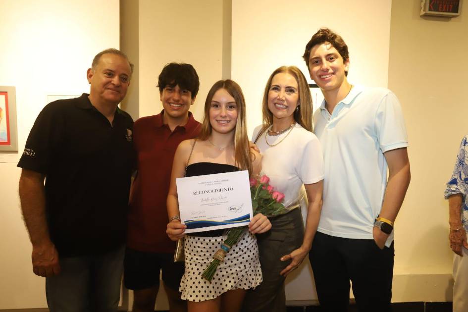La pequeña artista Ximena Lizárraga entre sus tíos, Joel Lizárraga y Gaby Testas de Lizárraga; su primo, Camilo Lizárraga, y sus papás, Sofía Correa de Lizárraga y Poncho Lizárraga. ( ) -