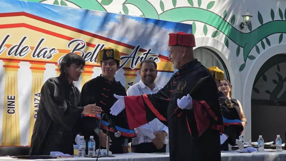 El emotivo acto de investidura se llevó a cabo en el patio central del Museo de Arte de Mazatlán. El reconocimiento destaca las contribuciones excepcionales y el mérito invaluable de Arcadia a las Bellas Artes, con más de cuatro décadas dedicadas a la danza folklórica.