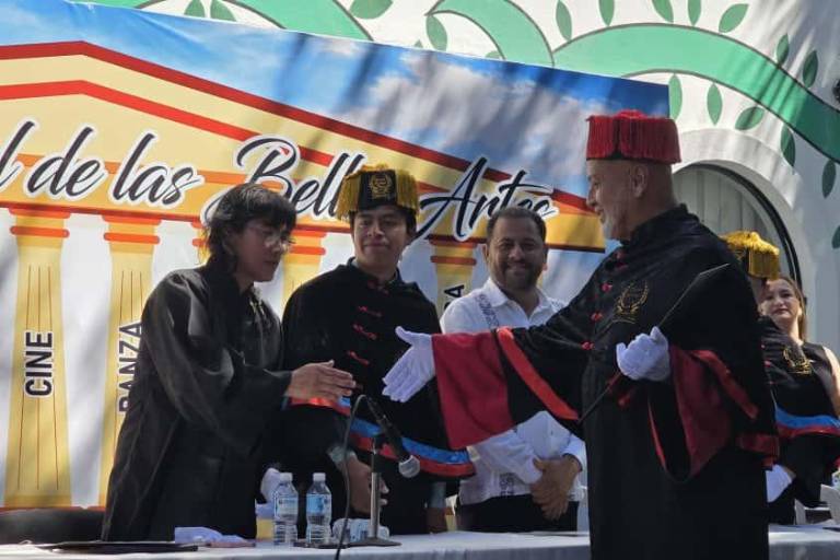 El maestro Arcadia subió al estrado vestido con el traje reglamentario para la ocasión, en color negro, toga, birrete y muceta en color rojo y negro, un atuendo que simboliza la alta distinción académica. Mientras recibía el doctorado, el patio central se inundó de gritos de “¡bravo!” por parte del público que se dio cita para celebrar al reconocido artista.