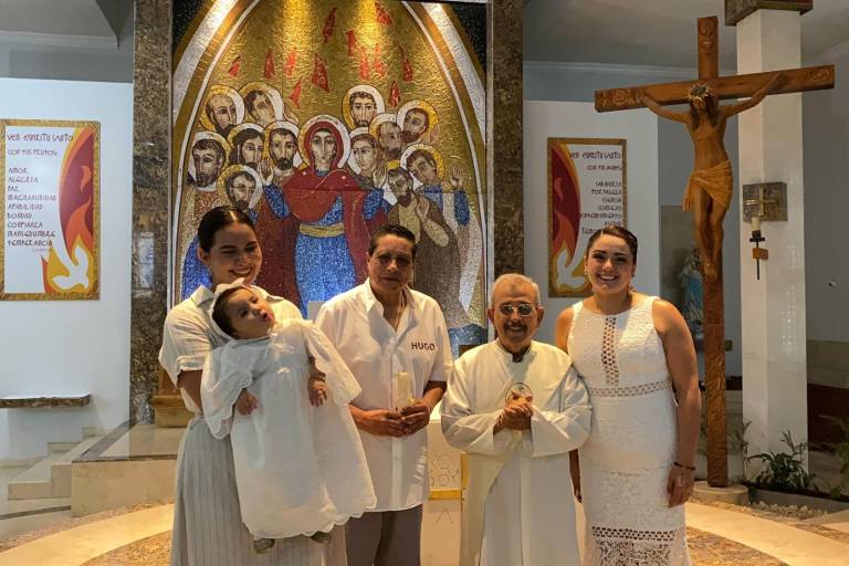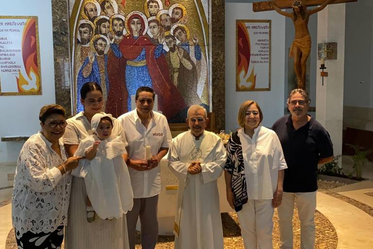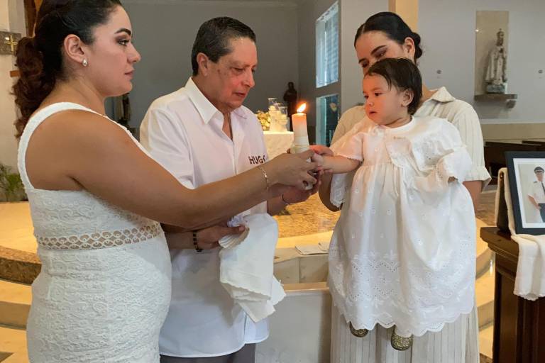 Eleny Gastélum y Alfonso Sánchez presentaron a su hija Evangeline Gastélum Caro, en el Templo del Espíritu Santo para recibir el sacramento del bautizo.