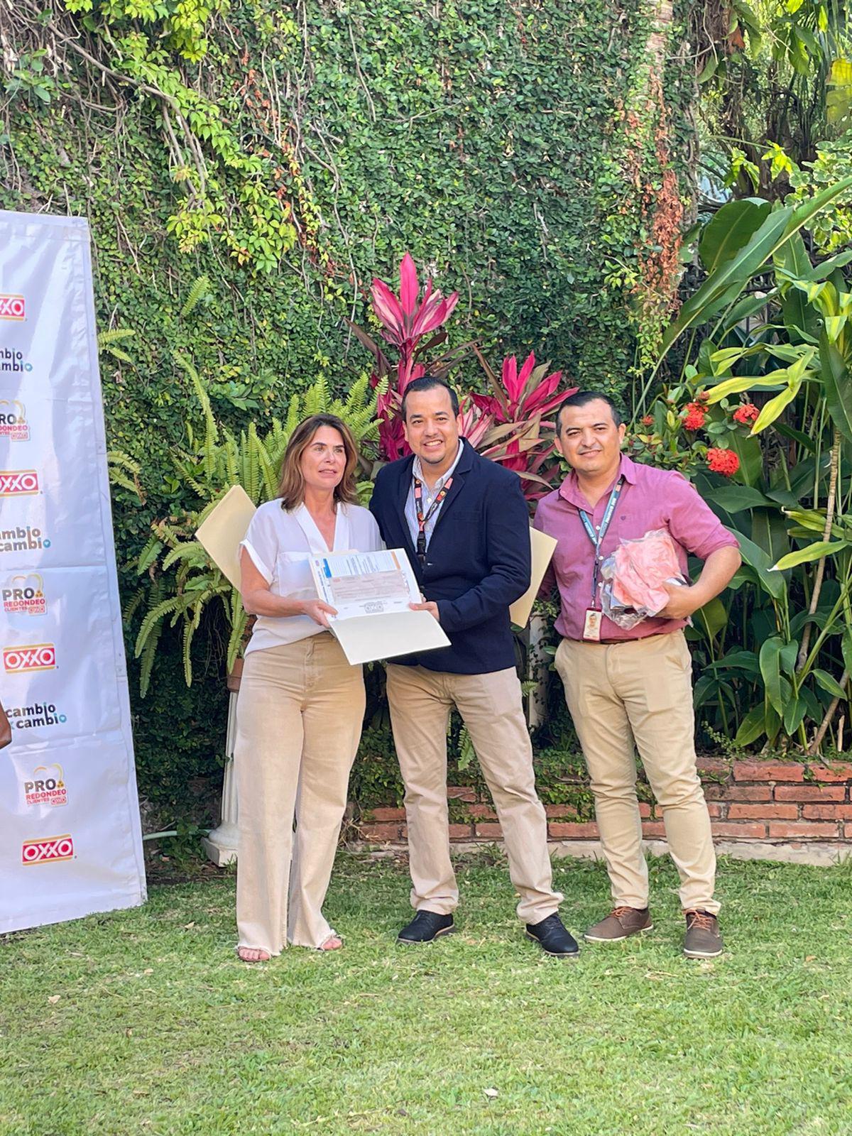 A la entrega acudió Daniel Cota, gerente de Operaciones; Víctor Andrade, responsable administrativo, la señora Mireya, líder de OXXO Tellería y la señora Erika, líder OXXO Portomolino.