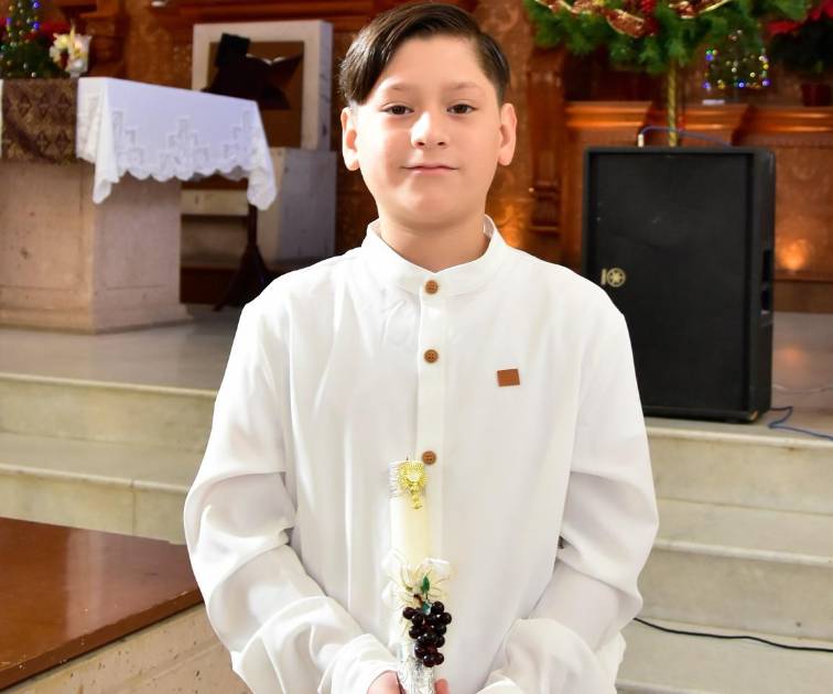 Su familia lo acompañó en la ceremonia del sacramento de la Comunión y fue apadrinado por Marlenne Mendoza Franco y Arturo Rubio Aguilar, quienes serán sus guías espirituales de ahora en adelante.