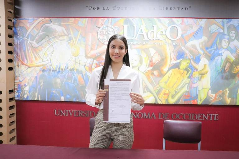 “Con tu presentación nos has demostrado que ha valido la pena todo el esfuerzo institucional que desde el año 2018 hicimos para abrir la Licenciatura en Ciencias Biomédicas en la Universidad Autónoma de Occidente, tu esfuerzo habla de que si seguimos trabajando todas y todos unidos, podemos lograr cosas muy grandes, te felicito”, expresó la rectora de la UAdeO.