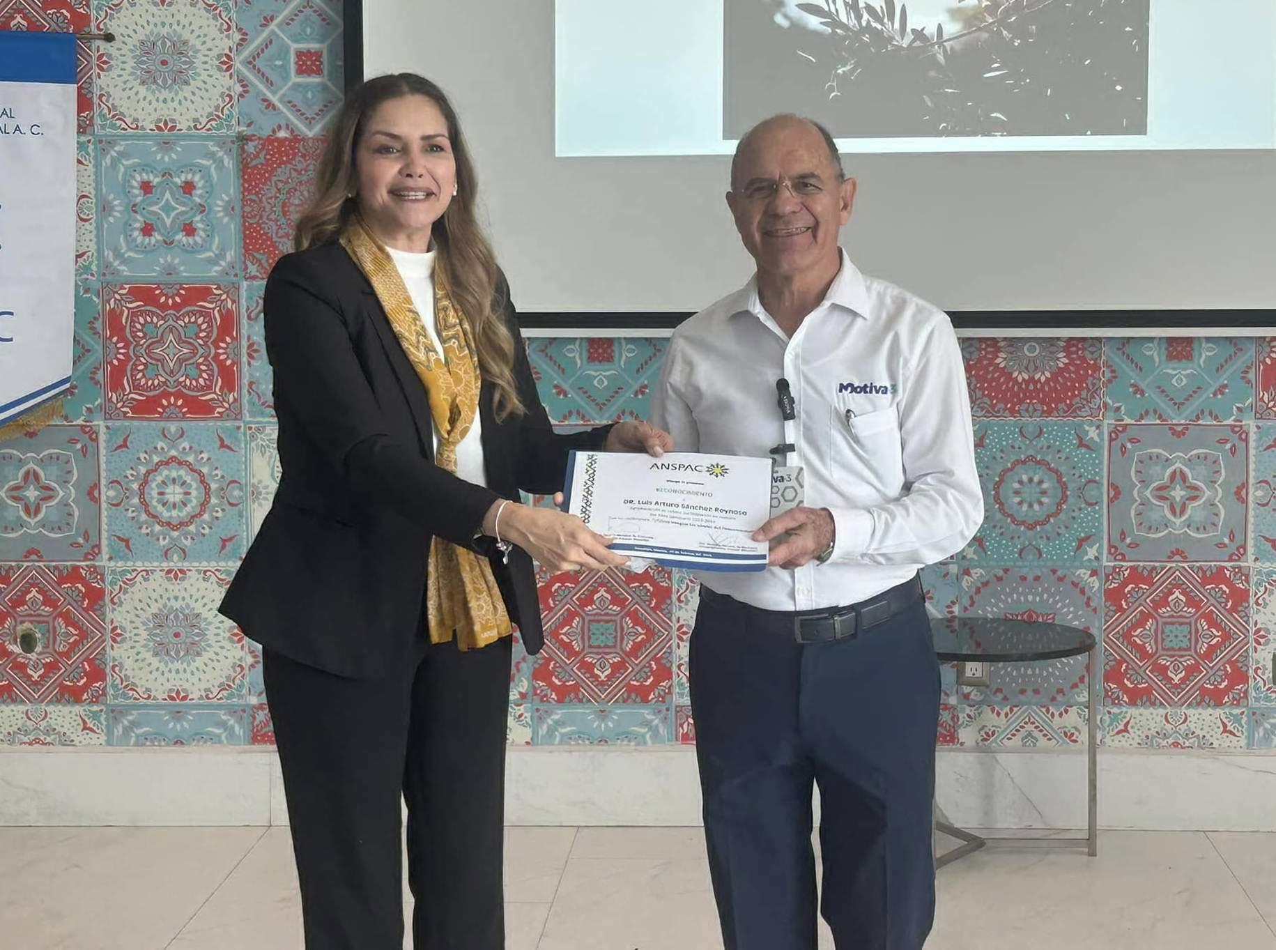 Al final, Imelda Morales de Chicuate, presidenta de Anspac Mazatlán, realizó la entrega de un reconocimiento al invitado especial.