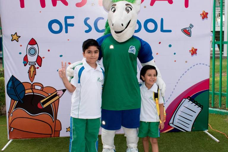Chicos y grandes se vieron felices de volver a reencontrarse con sus amigos y maestros, siendo recibidos por el Potro, la mascota de la institución, con quien los alumnos se tomaron la foto de bienvenida, recibiendo también el saludo del nuevo director de la institución el Dr. HC Xavier Maytorena.