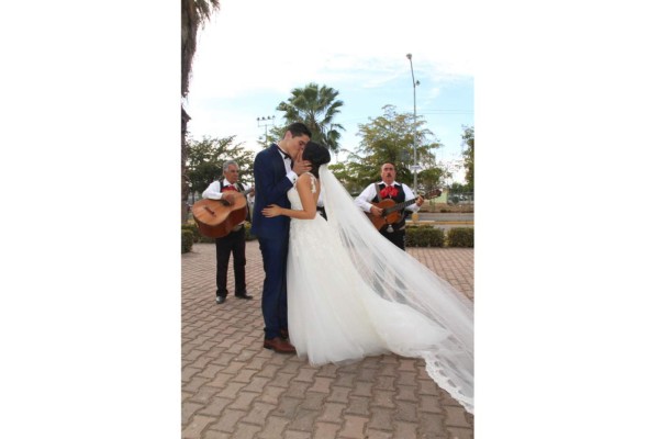 El Templo de la Santa Cruz albergó la ceremonia, en la que estuvieron María del Rosario Camacho e Isela Saucedo, mamás de la novia y el novio, respectivamente, orando por la felicidad de ellos.