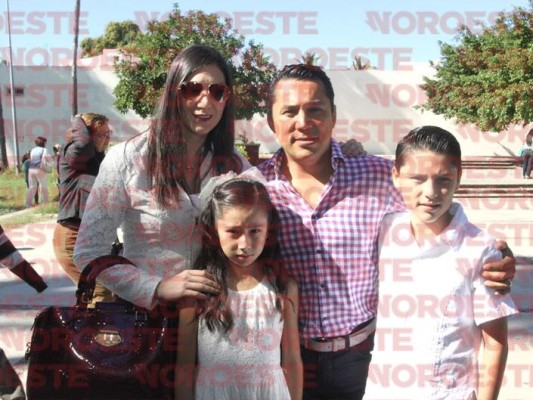 Temo Pérez y Rocío González acompañaron a sus hijos en tan importante momento de su vida espiritual, así como sus padrinos, Gabriela González y Francisco Barraza.