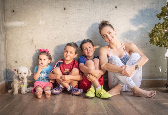 Elena Krinis de Ortiz al lado de Juan Dimitri, María Lucía y Eleni Ortiz Krinis.