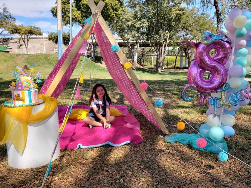 En esa ocasión decidieron celebrar sus 8 años al aire libre en el Parque Las Riberas, donde se montó una colorida escenografía al estilo teepee, que compartió con sus papás, Karina Zambrano Cázares y Héctor Ignacio Palazuelos García; y sus hermanos, Arath Palazuelos Zambrano y Héctor Ignacio Palazuelos Lugo.