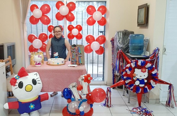 Sus papás Laura Hernández Yejun y Gerardo Muñoz Cruz, fueron los organizadores de la fiesta temática de Hello Kitty, en la cual la cumpleañera estuvo de lo más feliz.