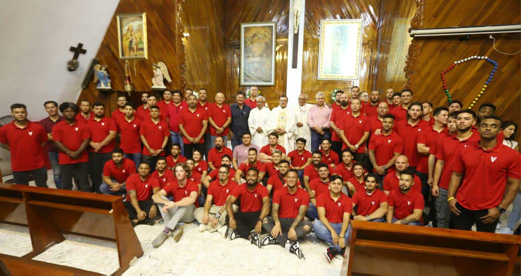 La tropa que acudió a la Parroquia La Sagrada Familia estuvo liderada por el mánager Luis Carlos Rivera, quien estuvo acompañado por el presidente del club, Ismael Barros Cebreros; Jesús Valdez, gerente deportivo, así como las nuevas incorporaciones, Dilson José Herrera, Luis Escobar y JP Woodward, en el cuerpo técnico.