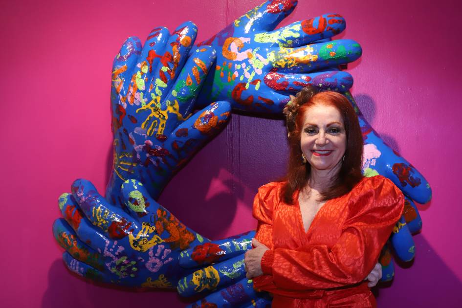 Rodeada de familiares, amigos y colegas, la artista plástica Gloria López Gavito realizó el corte de listón de su exposición individual “Vínculos oníricos, un lazo invisible”, en la Galería Rubio.