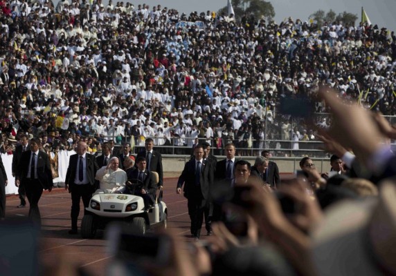 "Papa llega al estadio Venustiano Carranza de Morelia"