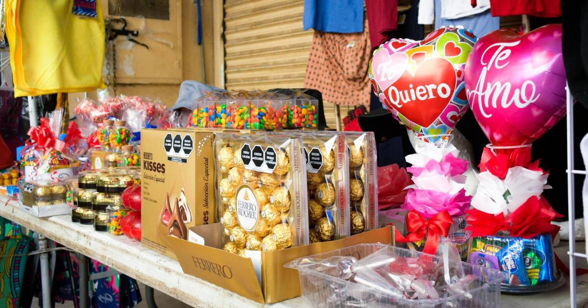 En una celebración completa del Día del Amor y la Amistad, un mexicano gasta promedio una bolsa de paletas de corazón, que tiene un costo de 94 pesos, un globo decorativo de 140 pesos, un pastel pequeño de 119 pesos, una caja de chocolates de 130 pesos, una docena de rosas de 400 pesos, un peluche de 390 pesos y una cena para dos personas en un restaurante de gama media con un costo de mil 350 pesos.