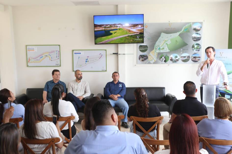 “Veredas tiene 90 hectáreas en total, de las cuales alrededor del 10 por ciento los vamos a dejar para áreas verdes, eso es un valor agregado que le generamos a la gente, ...el total que nosotros estamos contemplando va a ser alrededor de mil 900 familias que estén viviendo aquí”.
