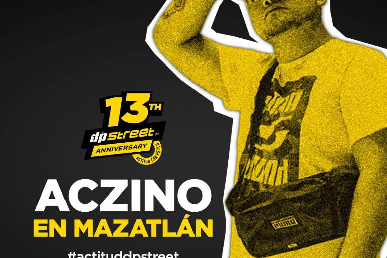 Para celebrar su 13 aniversario con sus 55 tiendas en todo el país, dpstreet presenta al rapero Aczino en Plaza Acaya Mazatlán, para conocer la dinámica, es necesario entrar a sus redes sociales.