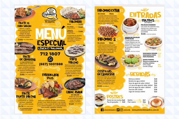 Así puedes ordenar todos los platillos que siempre te han encantado de este icónico restaurante y disfrutarlos en casa. Además, con su línea "Palomar en Casa" puedes ordenar también porciones de litro y ½ litro de sus guisados, sopas, frijoles, salsas e incluso aguas frescas. En caso de que aún no sepas qué pedir, te dejamos aquí abajo el menú completo. ¡Seguro algo se te antoja!