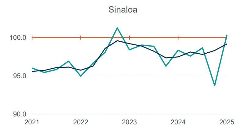 Después de que al cierre de 2024 Sinaloa fue el peor estado en incremento en actividades económicas, al primer trimestre de 2025 la entidad se recuperó con un aumento de 7.0 lo que lo posiciona como el estado de mayor crecimiento en comparación con el trimestre anterior.