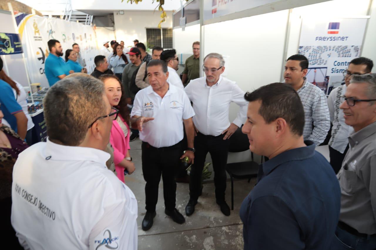 El anfitrión Jesús Antonio Espinosa Sanabria, presidente del Colegio, fue acompañado de Cristina Ovalle Acosta, directora de Obras Públicas municipal; Hugomar Peraza Ponce, de CMIC; Édgar Burgueño, del Colegio de Ingenieros; Tobias Lozano Solorza, de Codesin; y de Carlos Rivera Vega, de la Asociación de Desarrolladores Inmobiliarios de Mazatlán, para cortar el listón y recorrer cada stand participante.