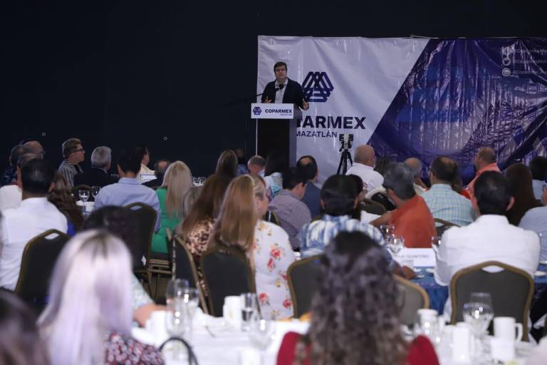 La conferencia es parte de los desayunos empresariales que realiza la Coparmex en Mazatlán.