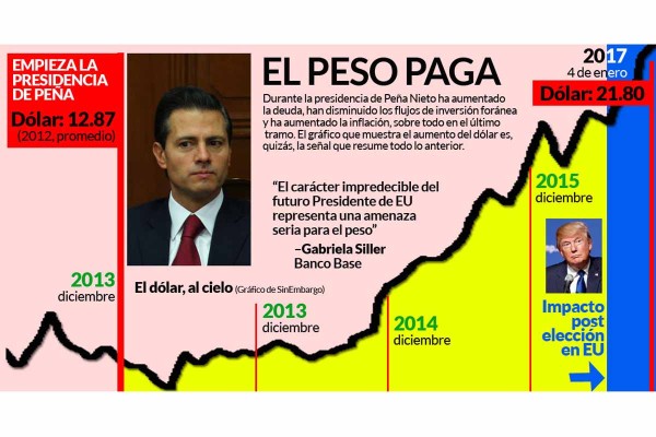 CIUDAD DE MÉXICO (SinEmbargo.MX/UNIV)._ La moneda mexicana continuó sufriendo los efectos del anuncio de Ford por la cancelación de su planta en San Luis Potosí, la incertidumbre generada por el Presidente electo de Estados Unidos, Donald Trump, la expectativa de un proceso alcista de tasas de interés más rápido en ese país, y la decepción sobre los anuncios del Presidente de México, Enrique Peña Nieto.