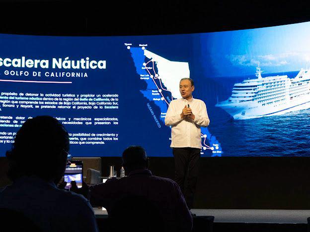 Alfonso Durazo, Gobernador de Sonora, afirmó en el Summit 2024 Ciudades con futuro. Sin miedo a la acción de Foro Mar de Cortés que anualmente se tiene la visita de 2.2 millones de turistas en cruceros en la región, sobre todo con visitantes de Estados Unidos y Canadá, y que la Escalera Náutica sería una opción para que esos visitantes internacionales puedan conocer otros espacios del Mar de Cortés.