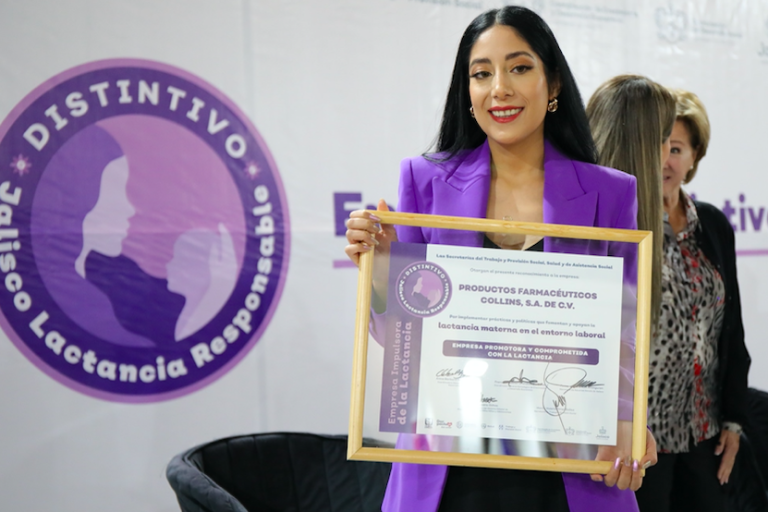 Recientemente, Grupo Collins, presidido por María Teresa Tirado Díaz, recibió el Certificado Jalisco “Lactancia Responsable”, mismo que obliga a las empresas adherentes a seguir concientizando y garantizando espacios seguros para las mamás colaboradoras.