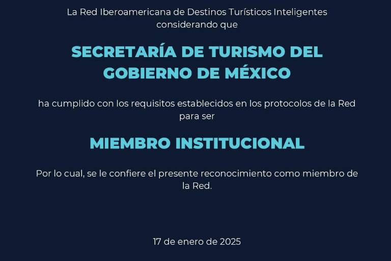 De acuerdo con un comunicado, aseguró que esto permitirá a México continuar con el impulso en la creación de Destinos Turísticos Inteligentes (DTI), es decir, sitios que cuenten con una infraestructura tecnológica de vanguardia que facilitan al turista la interacción con el entorno y mejoren la experiencia de las y los visitantes, así como la calidad de vida de la población.
