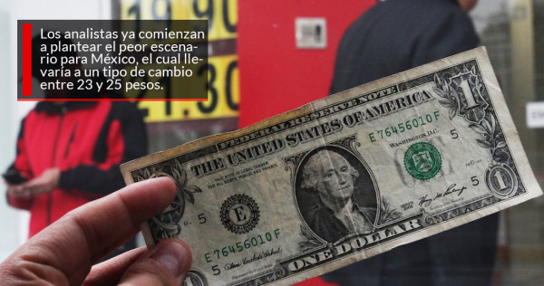 Los analistas ya comienzan a plantear el peor escenario para México, el cual llevaría a la economía a crecer hasta un punto porcentual menos en 2018, con un tipo de cambio entre 23 y 25 pesos, y una inflación de 4.5 por ciento. Este viernes el dólar se vende hasta en 19.25 pesos en bancos