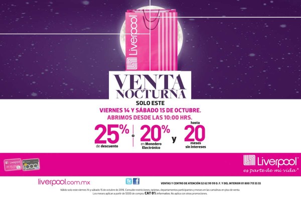 Liverpool tiene su Venta Nocturna sólo este viernes 14 y sábado 15 de octubre desde las 10:00AM.