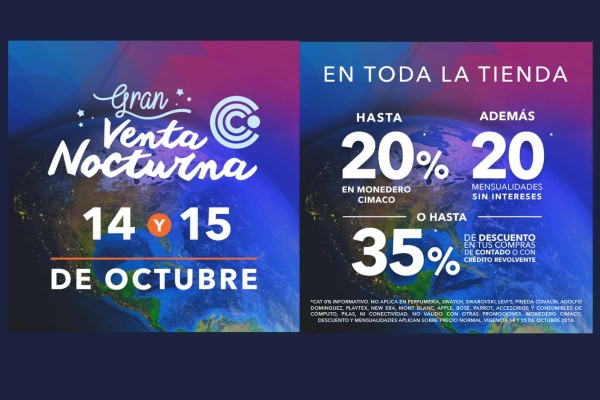 Cimaco piensa siempre en sus clientes, por eso abre su Gran Venta Nocturna, para que adquieran lo mejor para vivir bien a excelentes precios. Si estás en busca de ropa para la nueva temporada, un regalo o algún otro artículo en específico, aprovecha estos días de ofertas en Cimaco.