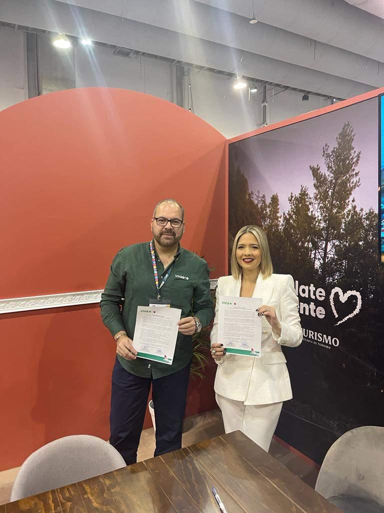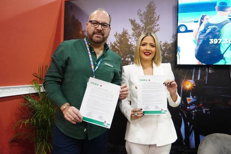 MAZATLÁN._ En el marco del Tianguis Turístico 2023, Viva Aerobús, en compañía de la Secretaria de Turismo de Sinaloa, Estrella Palacios Domínguez, anunció su nueva ruta Mazatlán – La Paz.