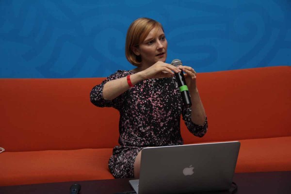 Kelli Anderson añadió que todo lo que rodea a la sociedad puede ser creación de un diseño y transmitir un mensaje a manera de venderlo, incluso puede ser hasta mejor tener interacción a través de diseños que el cliente pueda tocar, pues es la mejor manera en la que se va a recordar el mensaje o lo que se busca plasmar.