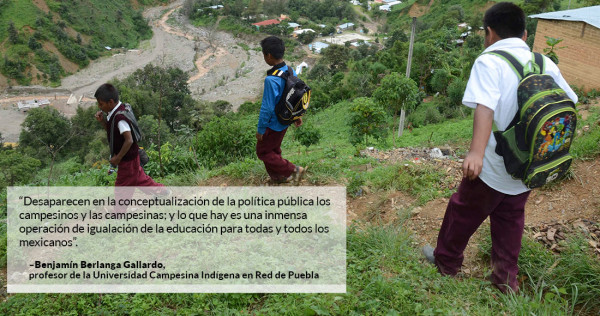 Benjamín Berlanga Gallardo, profesor de la Universidad Campesina Indígena en Red de Puebla, aseguró que actualmente debe retomarse la educación rural, entendiéndola como la vía para recuperar lo campesino y la idea de serlo. Sin embargo, este concepto se enfrenta a la instauración del Nuevo Sistema Educativo.