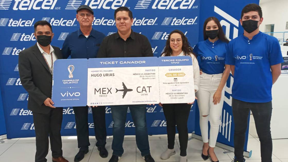 Telcel y la marca de teléfonos Vivo realizaron la entrega del boleto para acudir a la Copa Mundial de Futbol en Qatar 2022, al feliz afortunado de nombre Hugo Arnoldo Urías Buelna, de 31 años oriundo de Culiacán.