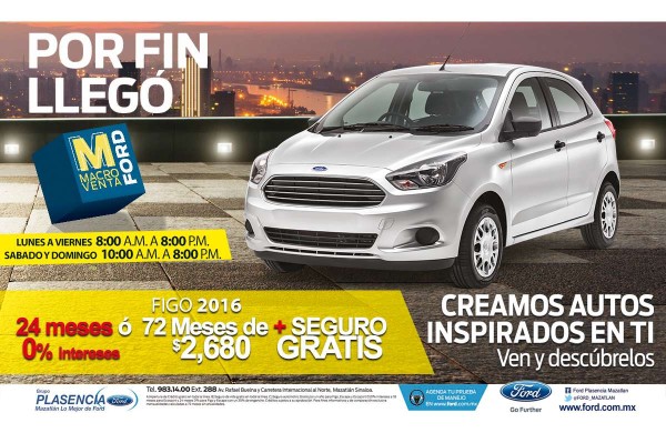 Hasta el 31 de Julio de 2016 ven a Ford Plasencia Mazatlán