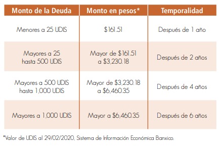 CONDUSEF informa que el Buró de crédito no es una lista negra que muestre únicamente lo negativo. Pero si por algún motivo no se quiere aparecer con algún adeudo, se debe saber que este no se borrará hasta que se haya cumplido por completo con la obligación de pago, es decir, que se haya liquidado, y una vez pagado a partir de esa fecha y de acuerdo con el monto de la deuda durará un tiempo en borrarse: