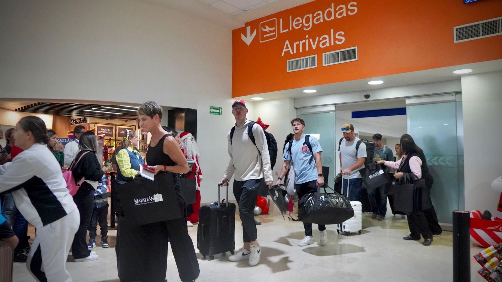 En la bienvenida también estuvieron presentes Eduardo Galindo, administrador del aeropuerto; y Celia Jáuregui Ibarra, Secretaria de Desarrollo Económico, Turismo y Pesca de Mazatlán.