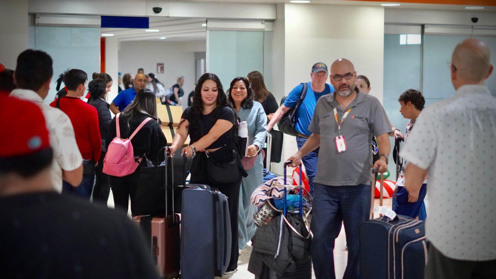 Con música sinaloense y bailes folclóricos en el Aeropuerto Internacional “Rafael Buelna” fue como se recibió a los 146 pasajeros que llegaron procedentes de Minneapolis, Minesota, en Estados Unidos.