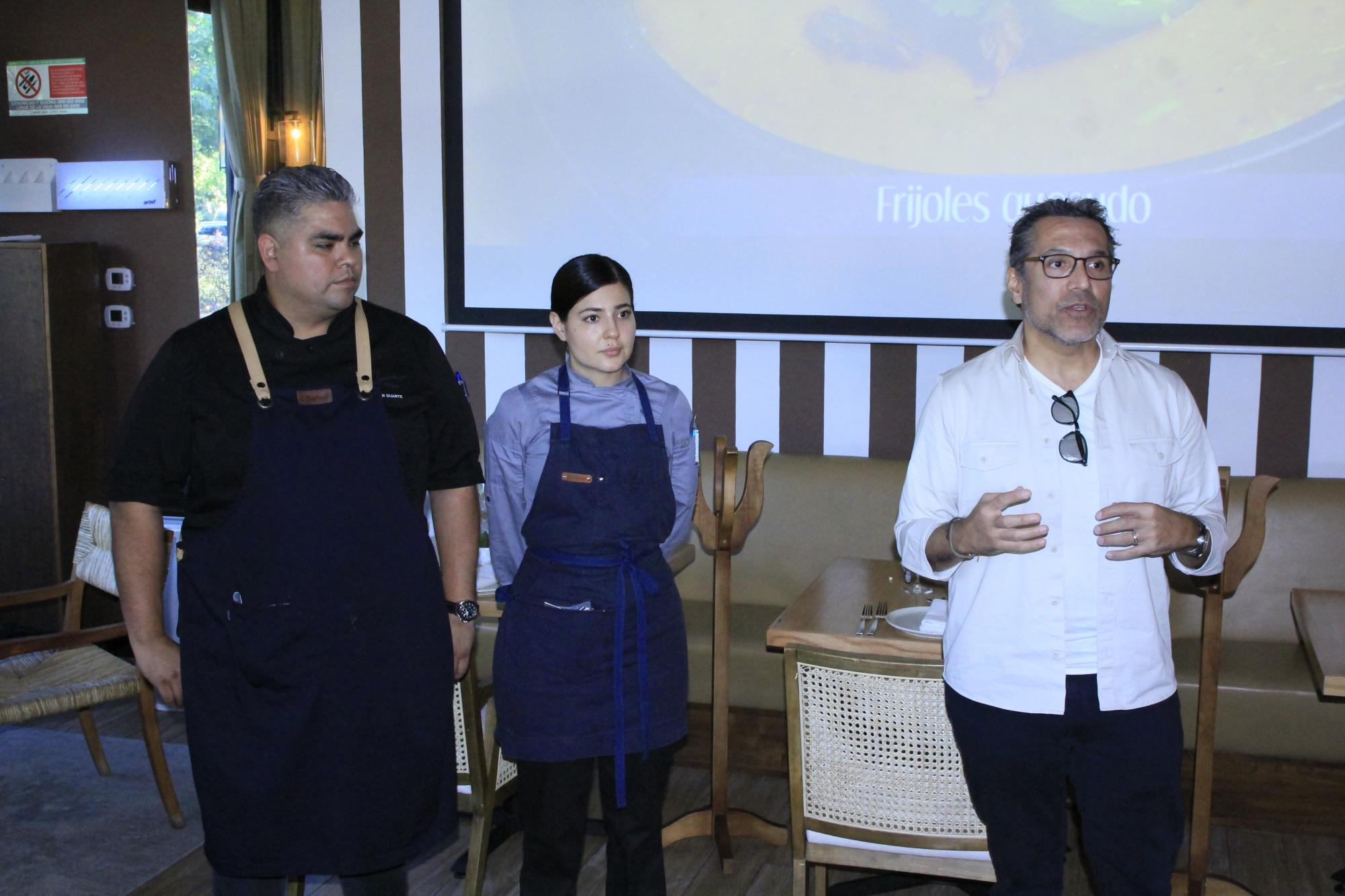 El chef Luis Osuna Vidaurri explica el origen de cada platillo del nuevo menú. -