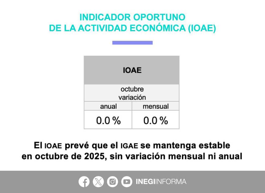 La economía mexicana experimentó un estancamiento en octubre de 2025, según datos del Indicador Oportuno de la Actividad Económica que publicó el Instituto Nacional de Estadística y Geografía.