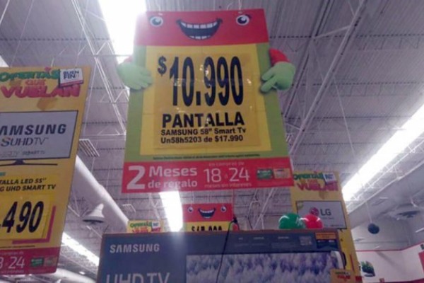 Soriana fue obligada por la Procuraduría Federal del Consumidor (Profeco) a vender en 10.99 pesos unas pantallas Smart TV marca Samsung, tras cometer un error al etiquetarlas y luego de que el personal y clientes de dicha sucursal en Chihuahua protagonizaron un altercado.