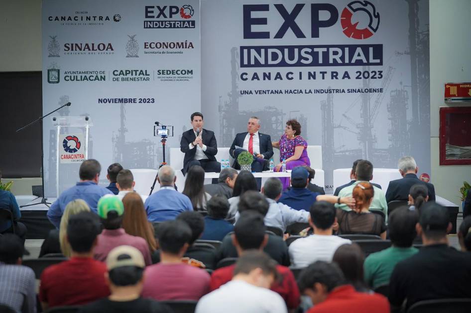 En una charla con empresarios y público de la Expo Industrial Canacintra, aseguró que por la visión del Gobernador Rubén Rocha Moya, en la entidad se están instalando empresas tractores.