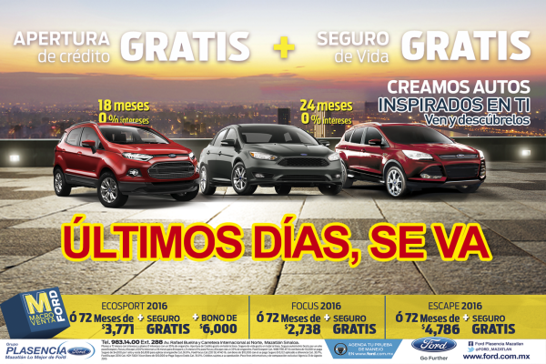 Para ir al trabajo o para trasladar a la familia, FORD ha pensado en todas esas personas que necesitan un auto nuevo y ha creado la MACROVENTA FORD, que incluye apertura de crédito y seguro de vida totalmente gratis.