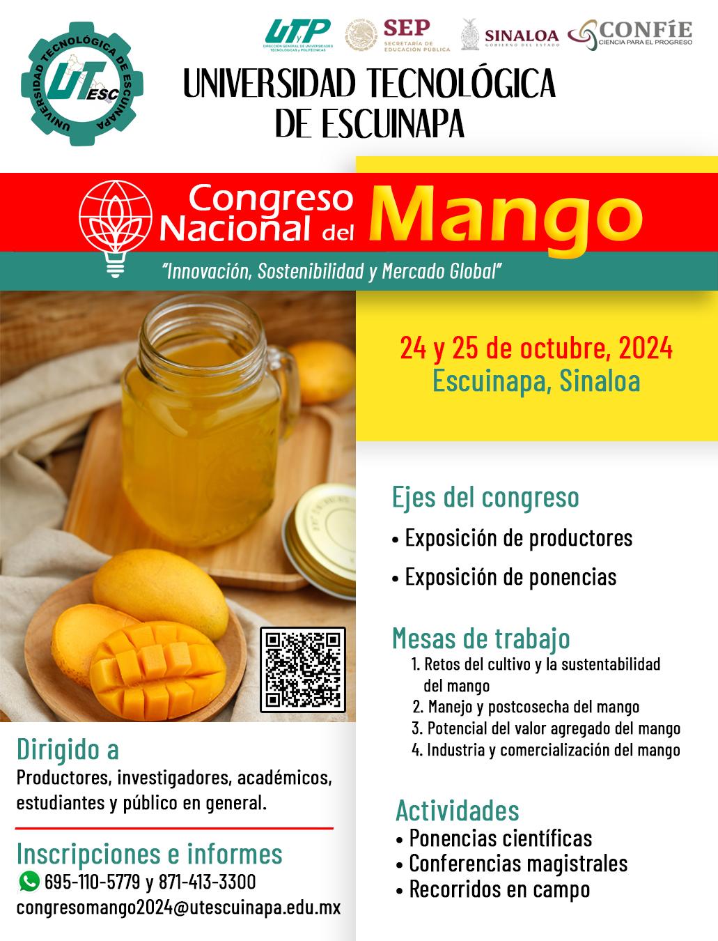ESCUINAPA._ El 24 y 25 de octubre del año en curso tendrá lugar el Congreso Nacional del Mango 2024, en la Universidad Tecnológica de Escuinapa (UTEsc). Está dirigido a productores, investigadores, académicos, estudiantes y a todos a quienes les interese aprender más sobre esta valiosa fruta.