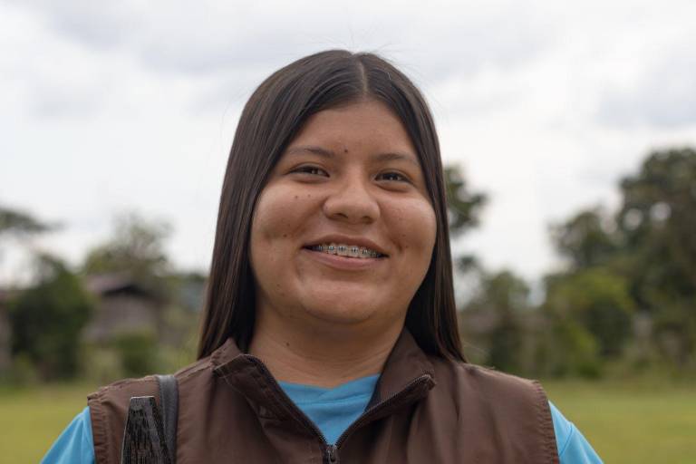Brigitte Escobar Piaguaje fue secretaria del pueblo Zio Bain, en el sur de la Amazonía colombiana, cuando tenía 17 años. Desde ese cargo empezó a participar de los encuentros que organizaba la guardia indígena Zio Bain Bos´ëcua Cuiracuayija, que significa Jóvenes Cuidadores del Territorio. “Hay un mensaje claro de defensa del territorio y cómo eso protege la vida misma y la identidad cultural”, dice sobre qué le motivó a unirse a la agrupación.